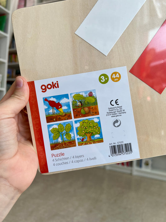 Puzzle in legno, dal seme all’albero, ciclo evolutivo