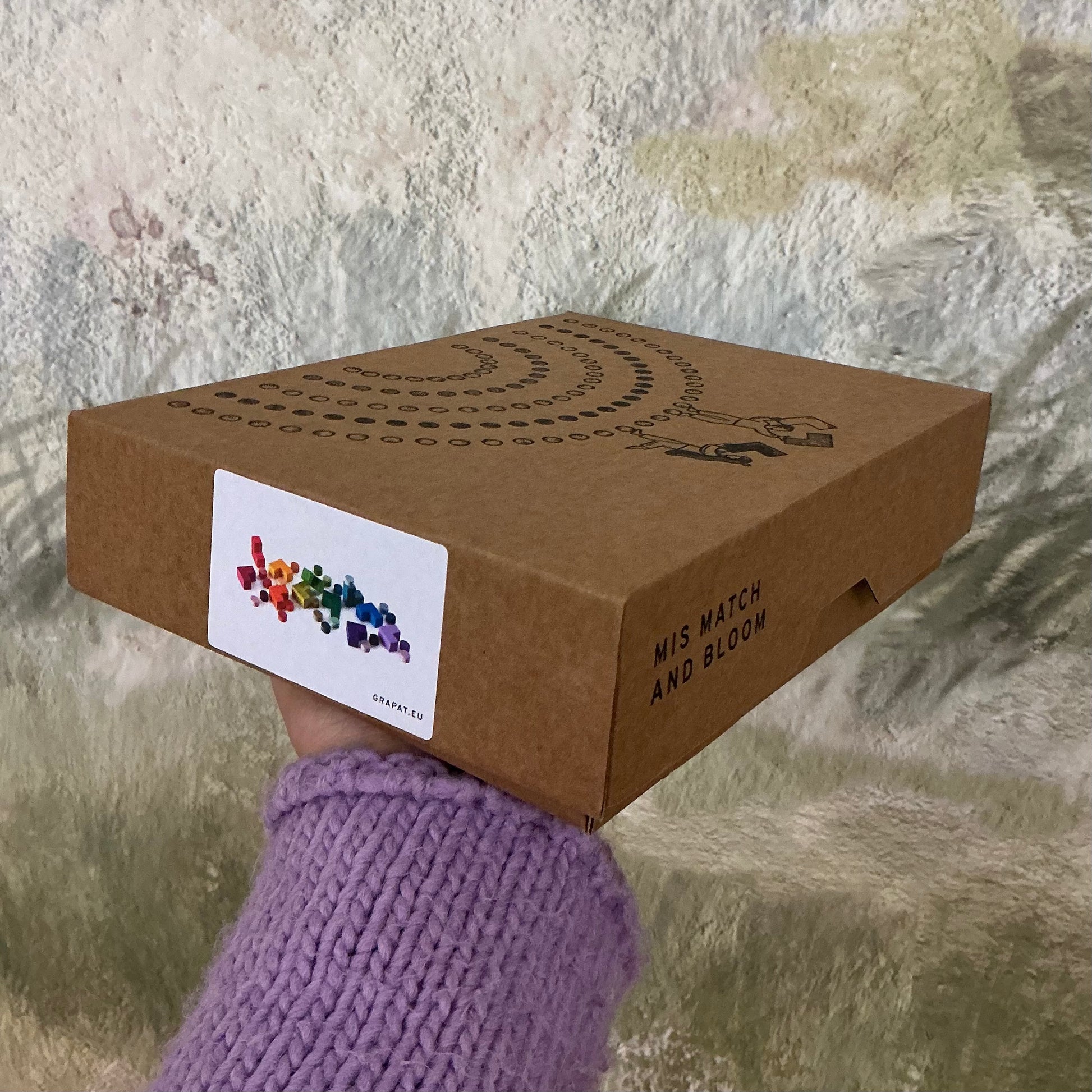 Il set è composto da 400 piccoli pezzi di legno dipinti tutti a mano con tutte le sfumature dell’arcobaleno. All’interno della scatola troverete una sacca in tessuto per contenere tutto il materiale.